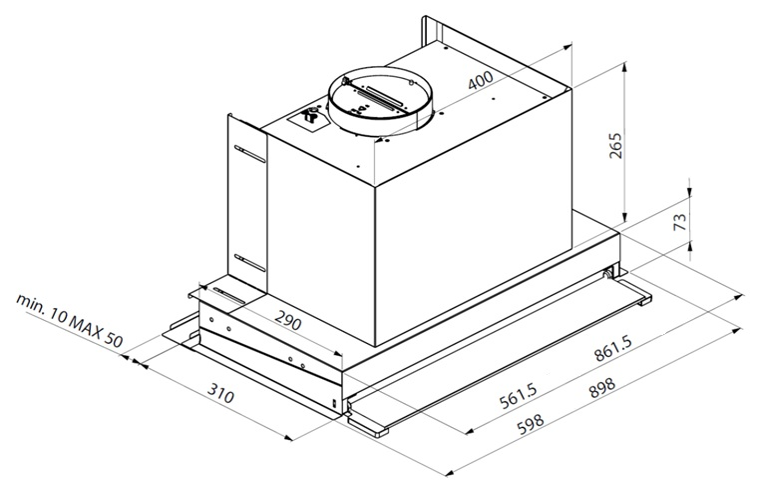 Je visoko učinkovita, ima 3 stopnje + booster, z največjim pretokom zraka do 723 m3/h, glasnostjo med 50 in 62 dBA (67 na intenzivni stopnji) in kakovostno LED-osvetlitvijo.